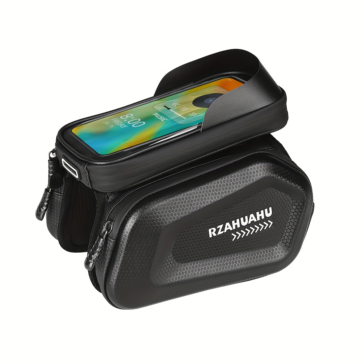 TEMU 고시인망진 블랙 자전거 핸들바 가방 - 조절 가능한 설치, 튼튼한 대용량 수납 기능, 사이클링 필수품, 휴대폰, 열쇠, 야간 라이딩 안전 장비 보관 가능, 고시인망진 소재 사용.