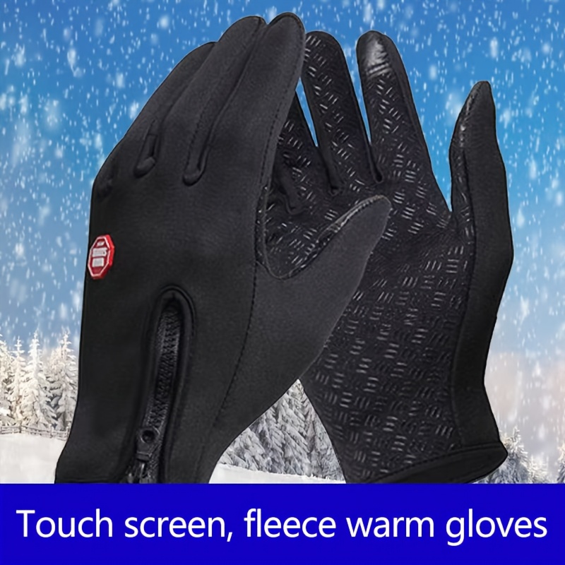 TEMU 1쌍 겨울용 터치스크린 장갑, 보온 방풍 방한 & 라이딩 장갑, 스마트폰 제어 기능, 지퍼 잠금, 플리스 안감, 터치스크린 호환 (남성 & 여성용, 눈, 스마트폰 사용)
