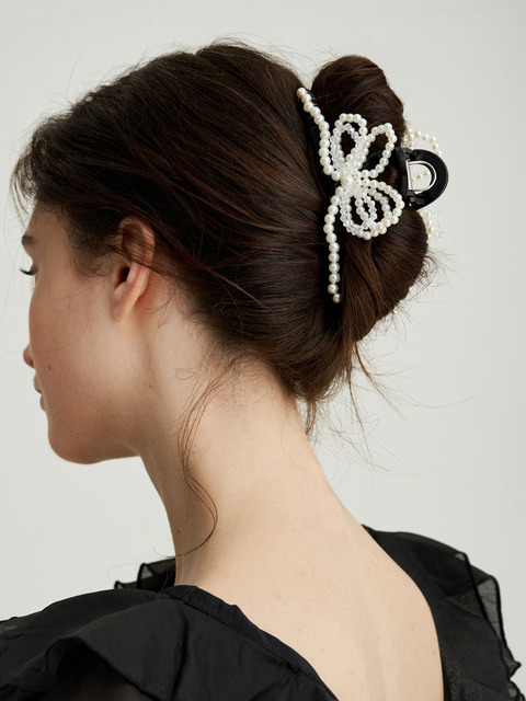 [장폴클라리쎄] 진주 비즈 리본 집게핀 JP-25-048CC