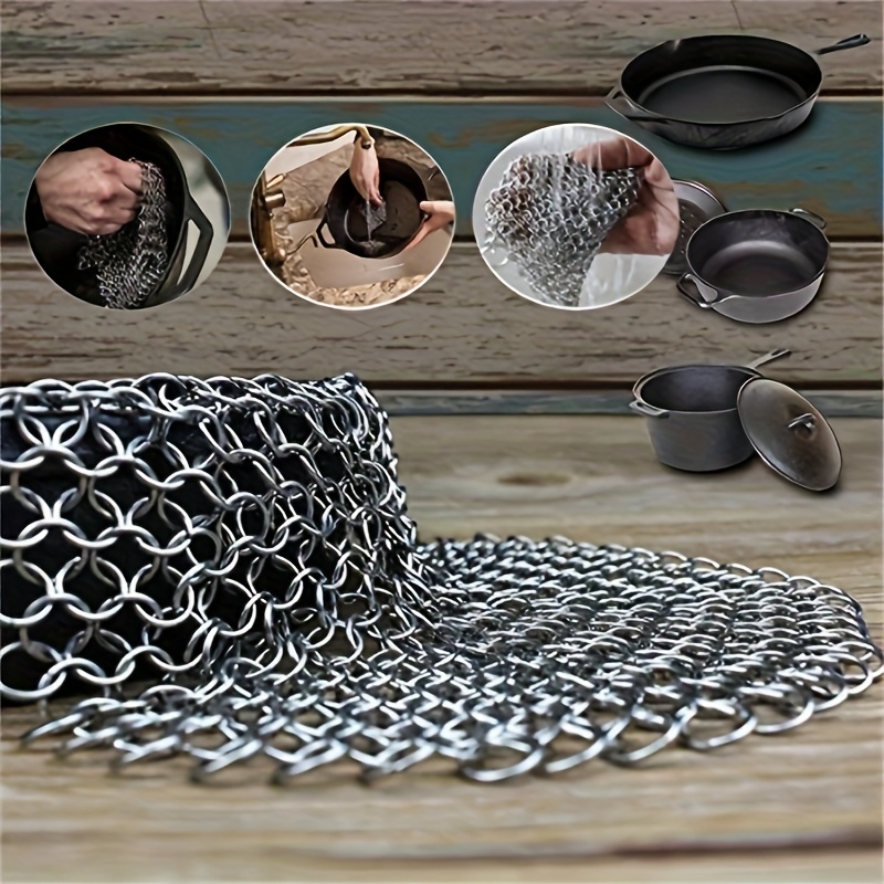 TEMU 1개 헤비듀티 스테인리스 스틸 스카워링 패드 - 인체공학적 플라스틱 손잡이, 재사용 가능한 원형 설거지 브러시, 녹 방지 주방 청소 도구, 걸이 가능, 내구성 강한 냄비 & 접시 세척기