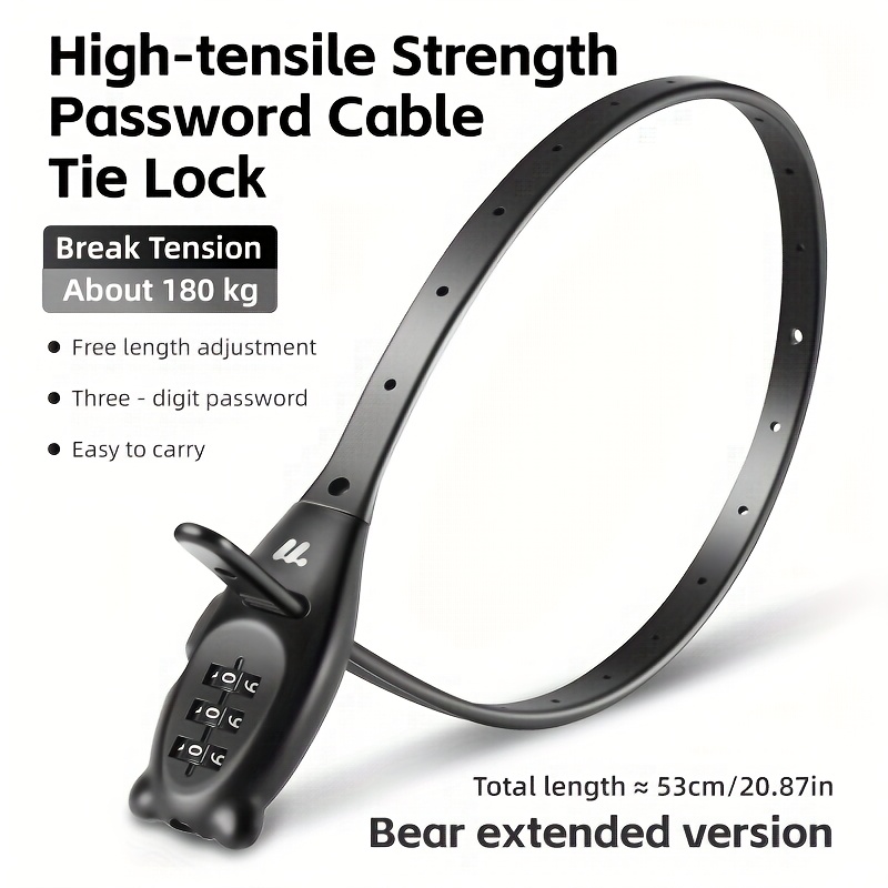 TEMU WEST BIKING 자전거 잠금장치 휴대용 비밀번호 잠금 아연 합금 케이블 타이 잠금 조절 가능한 로프 잠금 방지 도난 전기자전거 헬멧 잠금 산악/로드 바이크 라이딩 액세서리|자전거헬멧