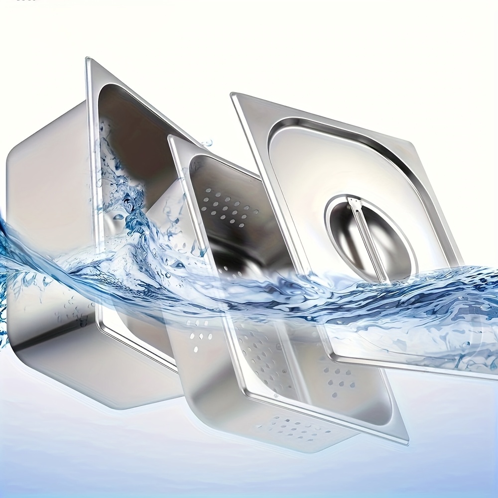 TEMU 3개 스테인리스 스틸 찜기, 튀김기 호텔 준비 테이블 식품 구멍 판 1/2 사이즈 세트, 다용도, 다기능, 식품 보관 용기, 뷔페, 준비, 식품 가열에 적합 (만화용)