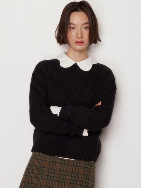 [오쿠카] 백지퍼 울 니트 탑 - 블랙