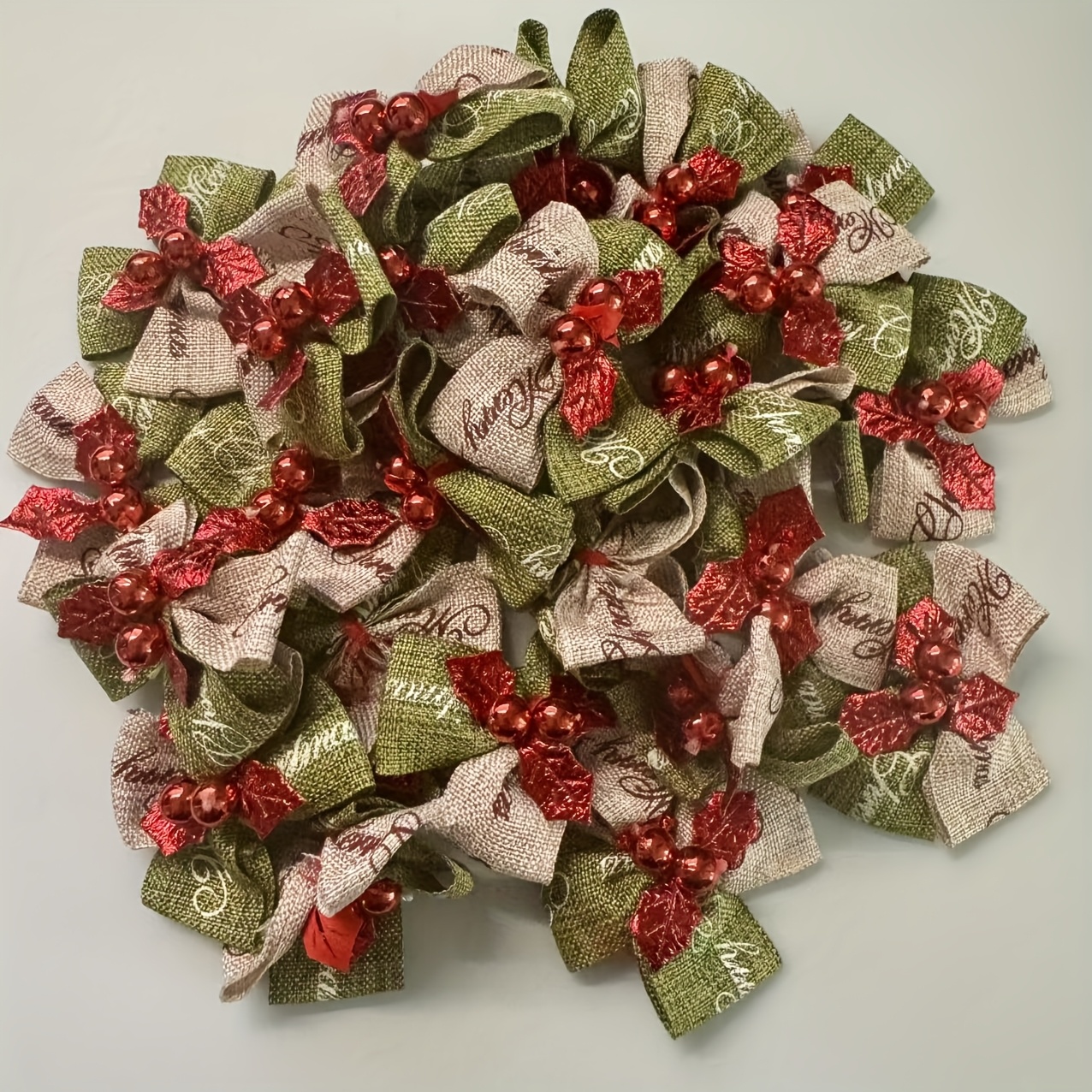 TEMU 30개 미니 크리스마스 리본 - 클래식 레드 & 그린 패브릭 리본, 화이트 도트 & 골든 팁, 핸드스티치 느낌의 가장자리, 크리스마스 트리 장식, 선물 포장, 웨딩 파티, 새해 장식용 - 대량 패키지 미니 리본 오너먼트
