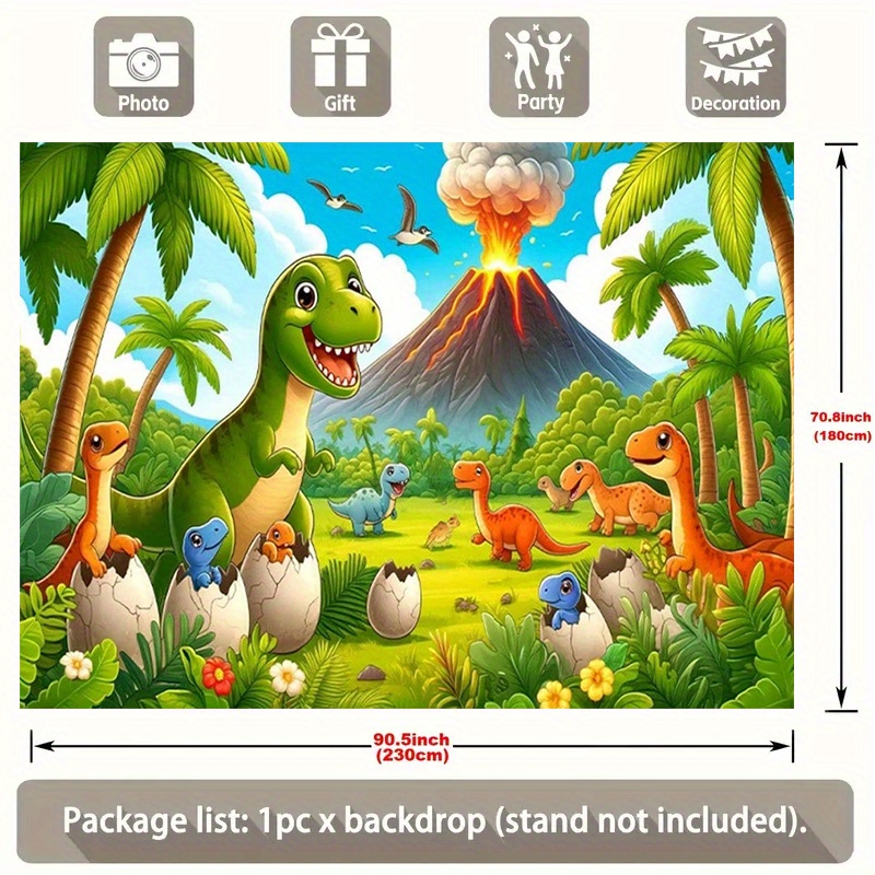 TEMU 만화 공룡 생일 파티 배너 - 폴리에스터 배경, 아름다운 공룡, 팜 트리 및 화산으로 실내/실외 기념식, 생일 파티 장식
