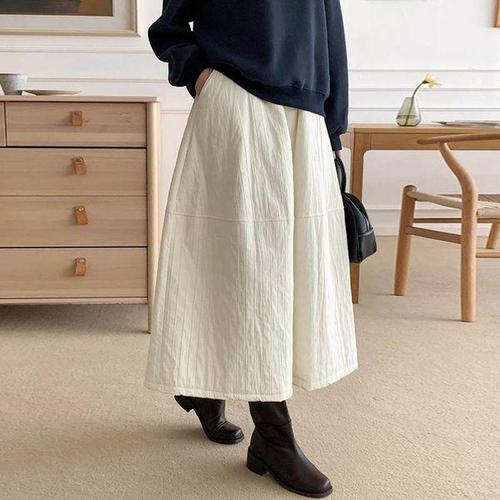 [보리맘]누빔 패딩 벌룬 롱 스커트 겨울 누비 밴딩 치마