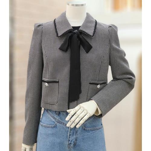 [JJ JIGOTT][JJ지고트]파이핑 체크 퍼프 크롭 재킷 GP3A0JK111_DG