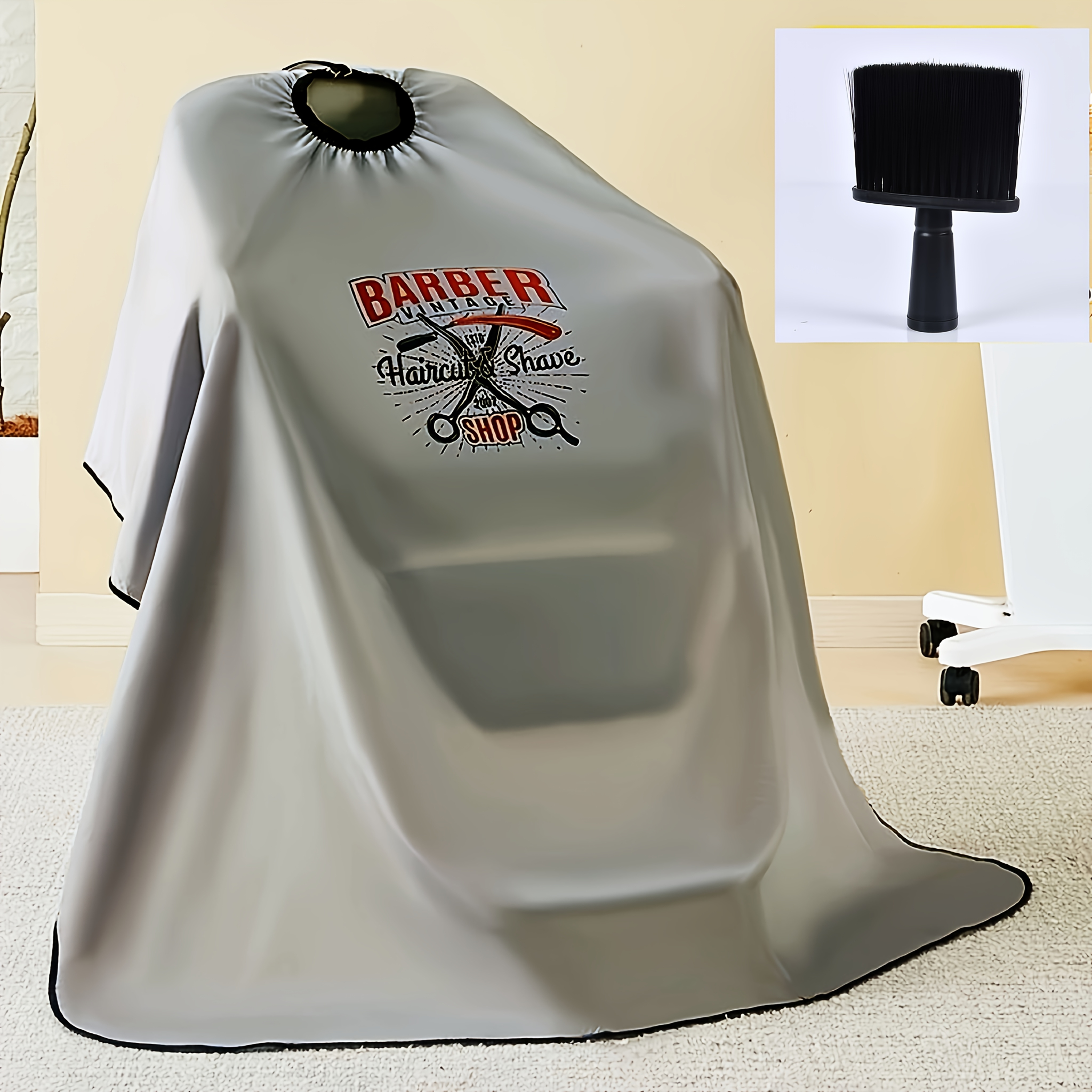 TEMU 패션 살롱을 위한 고품질 헤어 스타일링 케이프 세트. 전문가용 정전기 방지 및 논스틱 소재 특징. 헤어 스타일리스트를 위해 설계되었으며, 검정색 헤어 먼지 브러쉬가 함께 제공됩니다.