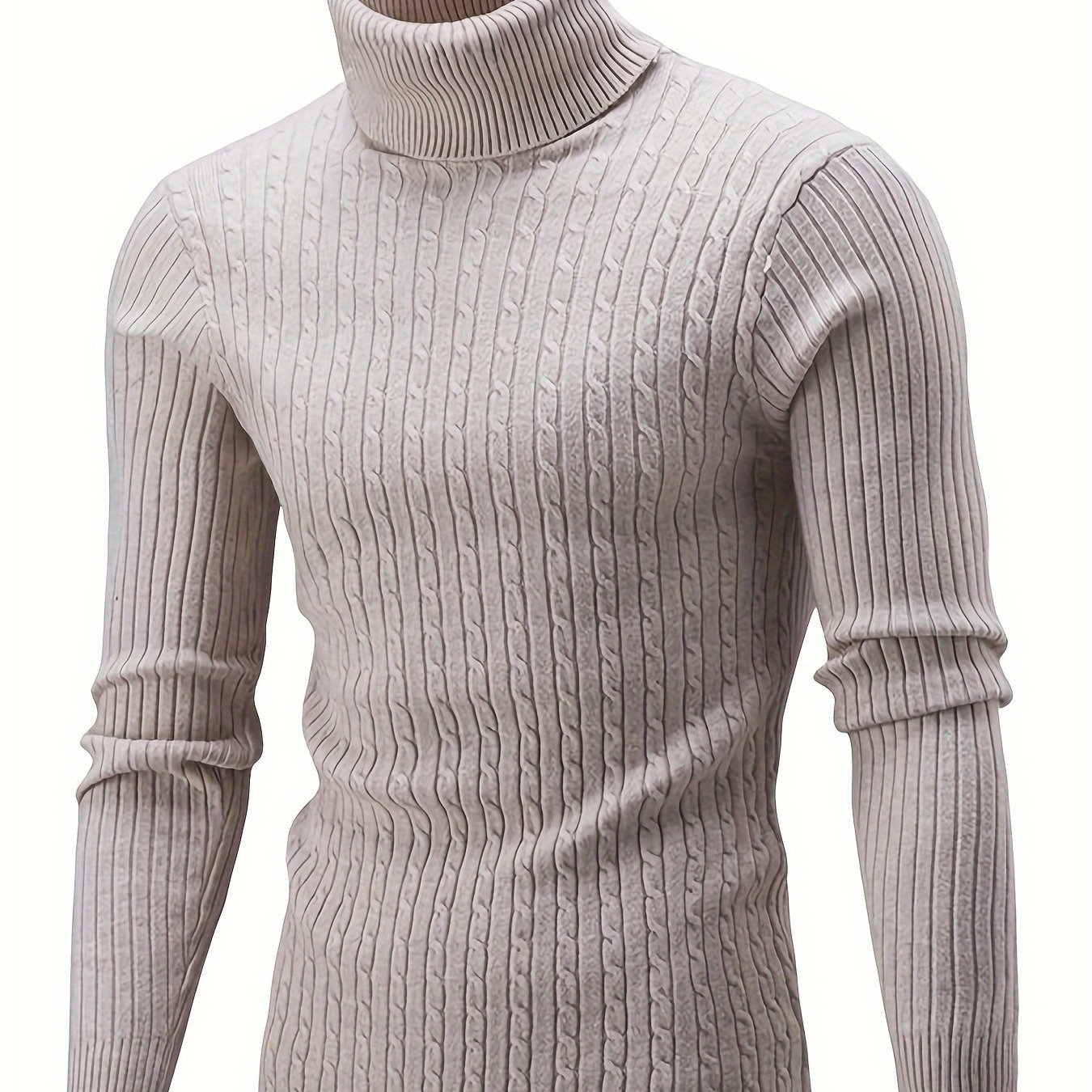 TEMU 남성 가을 겨울 니트 스웨터 하이넥 슬림핏 풀오버 솔리드 컬러