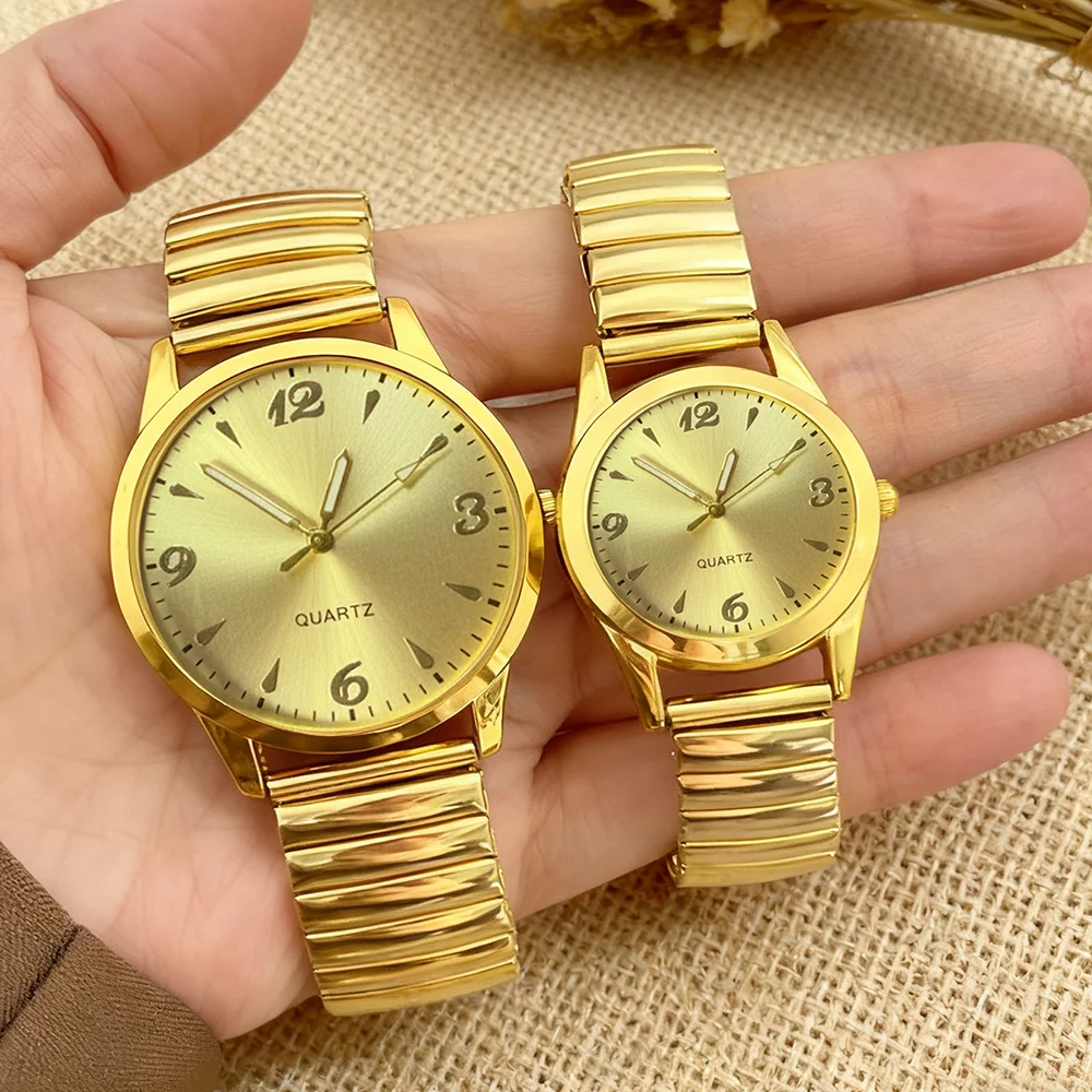 2개 세트 골드 커플 시계 세트 트렌디 럭셔리 디지털 스케일 쿼츠 시계 일상 의류 매칭에 적합 완벽한 선물