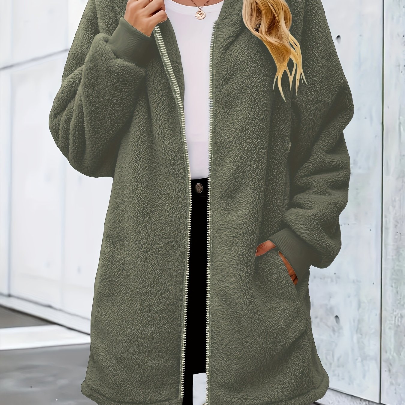 TEMU 플러스 사이즈 - 플러스 사이즈 - 여성용 포근한 플리스 안감 후드 지퍼업 가디건 - 오버사이즈 긴팔 오픈 프론트 스웨터 포켓 포함, 단색 캐주얼 겨울 아우터웨어, 가을 & 겨울용, 편안한 가을 착용 | 릴랙스 핏 카디건 | 부드러운 질감, 여성용 겨울 코트, 추위를 위한 루아나, 아름다운 가방 여성용, 커비 여성용 코트