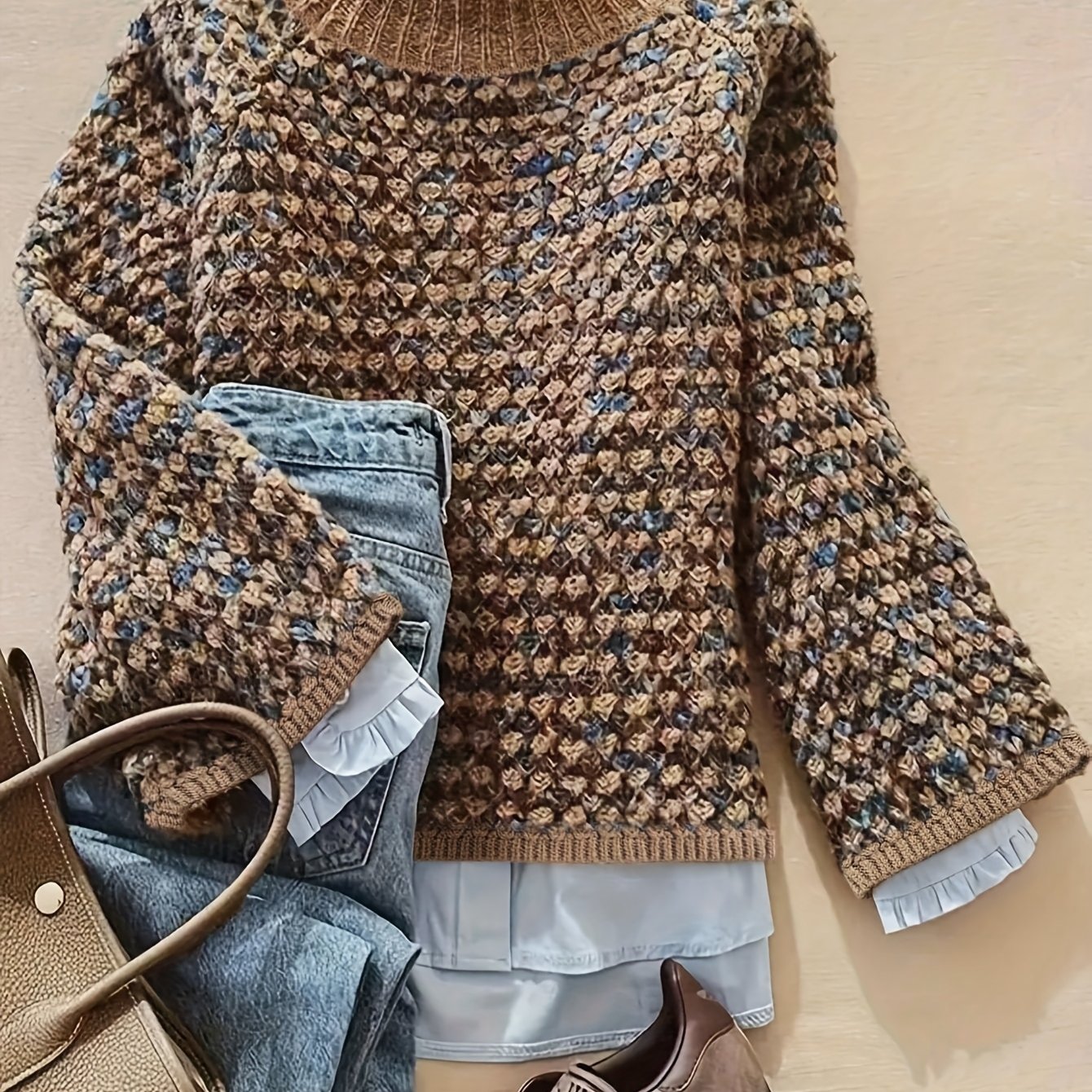 TEMU 여성용 우아한 하이넥 그라데이션 스웨터 - 부드러운 겨울 풀오버 옴브레 컬러 블록 (/// 컬러) | 데일리 웨어용 포근한 캐주얼 스웨터, 적당한 신축성 | 손세탁/드라이클리닝 | 재고 있음