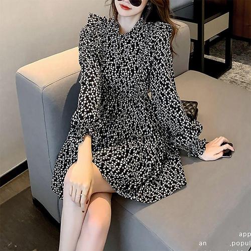 플라워 캉캉 미니 원피스 퍼프 봄가을 긴팔 쉬폰 시폰