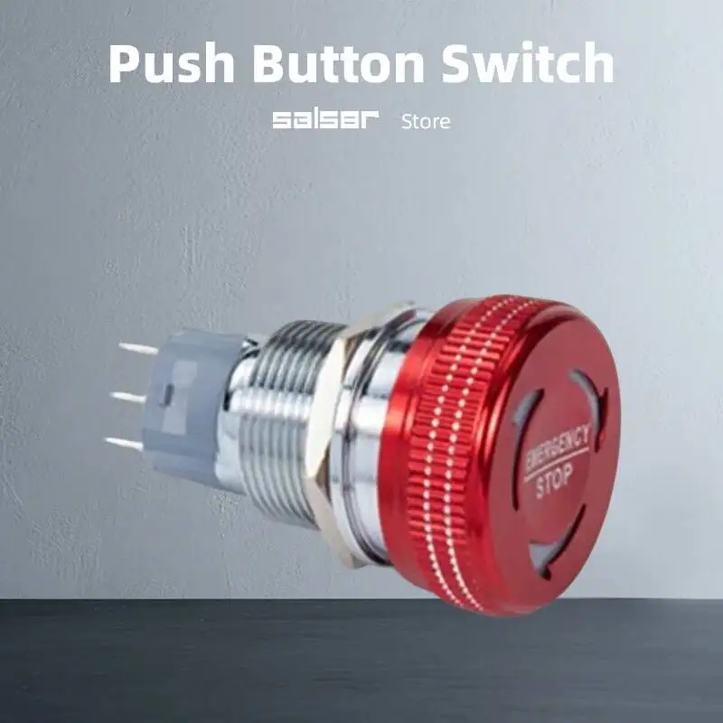 16/19/22mm 비상 정지 금속 푸시 버튼 스위치 1NO1NC 버섯 LED 조명 방수 로터리 12V 24V 220V