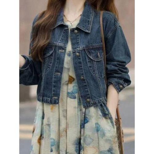 데님 카라 배색 포인트 페미닌 긴팔 자켓 (WIADJK002)