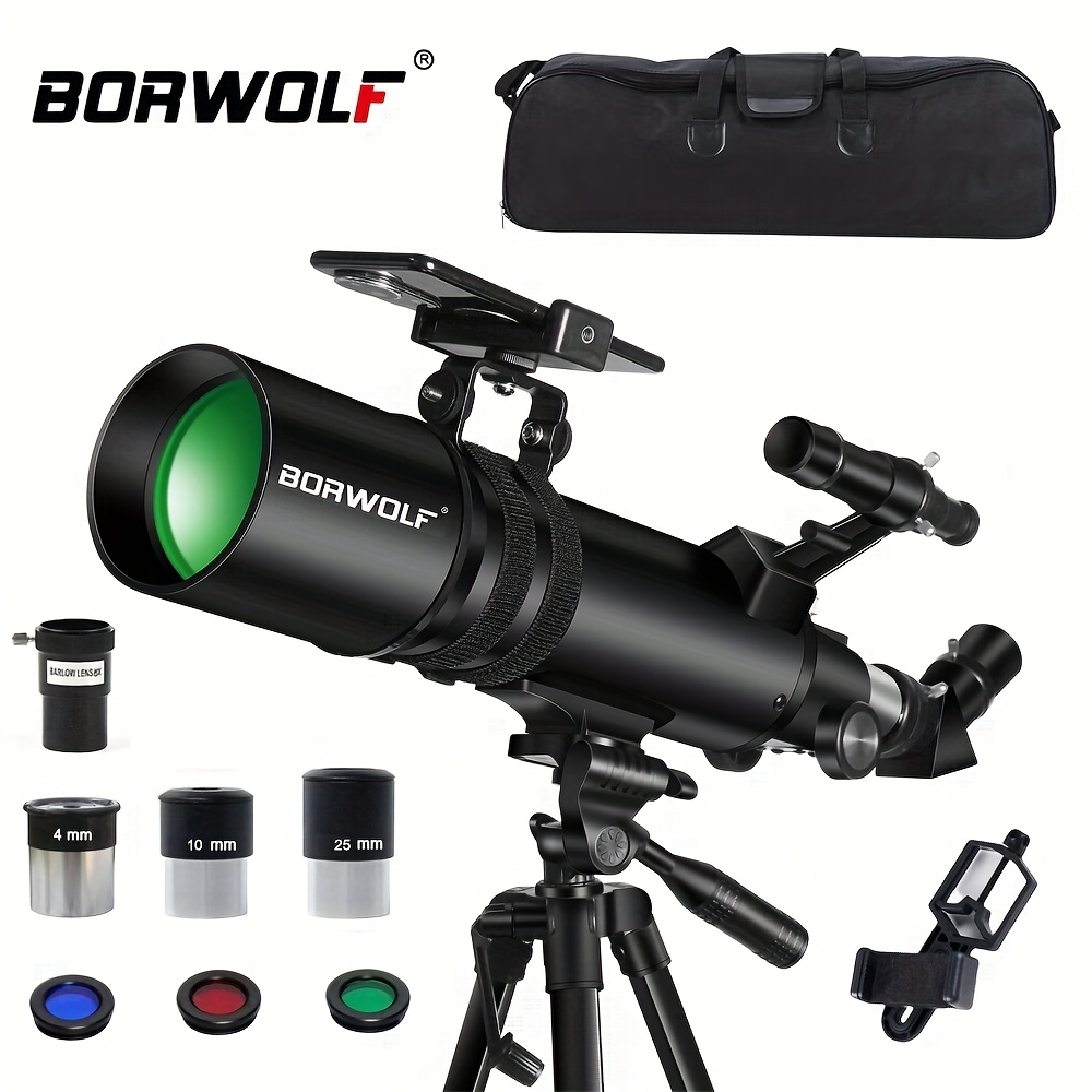 TEMU BORWOLF 전문가용 90mm 대구경 600mm 초점거리 사각형 망원경, 24X-750X 배율, 헤비듀티 조절식 삼각대 & 휴대폰 어댑터 - 컴퓨터화된 모드, 5x 바로우렌즈 & 교체가 가능한 접안렌즈, 성인과 초보자를 위한 수동포커스, 천문학 & 버딩에 이상적인 깊은 공간 관측 (스마트폰 호환), 카메라 장착이 가능한 망원경|천체망원경