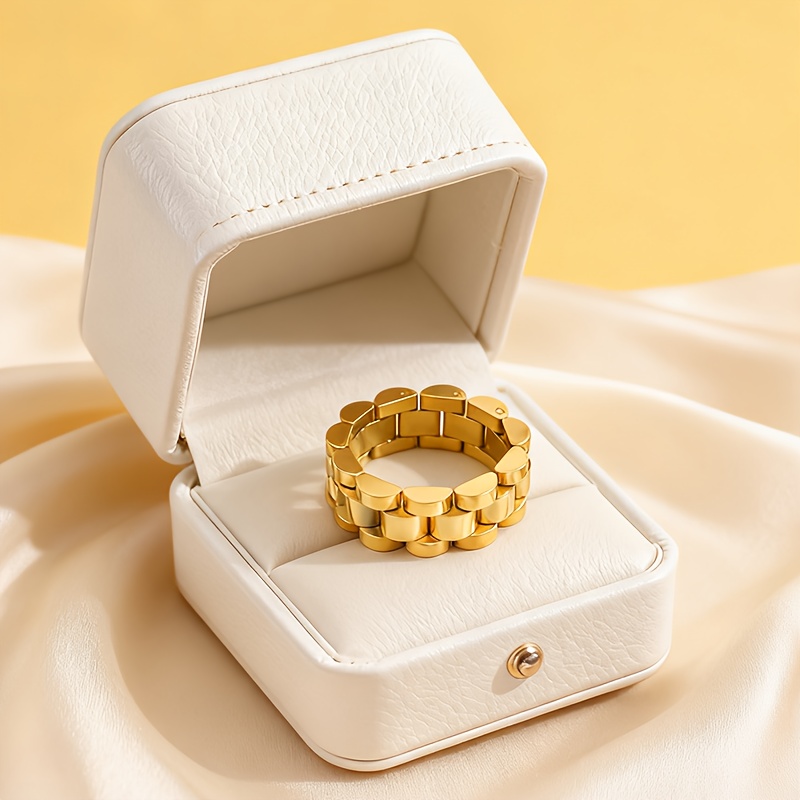 TEMU 우아하고 고급스러운 스테인리스 스틸 스트랩과 링, 발렌타인데이 선물로 추천하는 남녀공용 , 파티와 데일리 코디