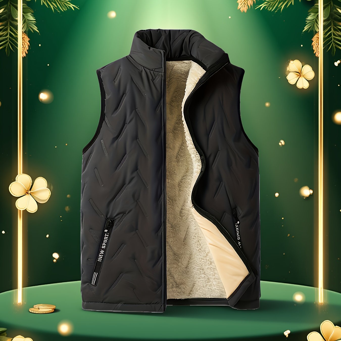 TEMU 남성용 경량 보온 조끼 - 내장 포켓, 스탠드 칼라, 루즈핏, 폴리에스터 충전재, 가을/겨울 캐주얼 스타일, 겨울 조끼, 두꺼운 남성용 조끼|민소매
