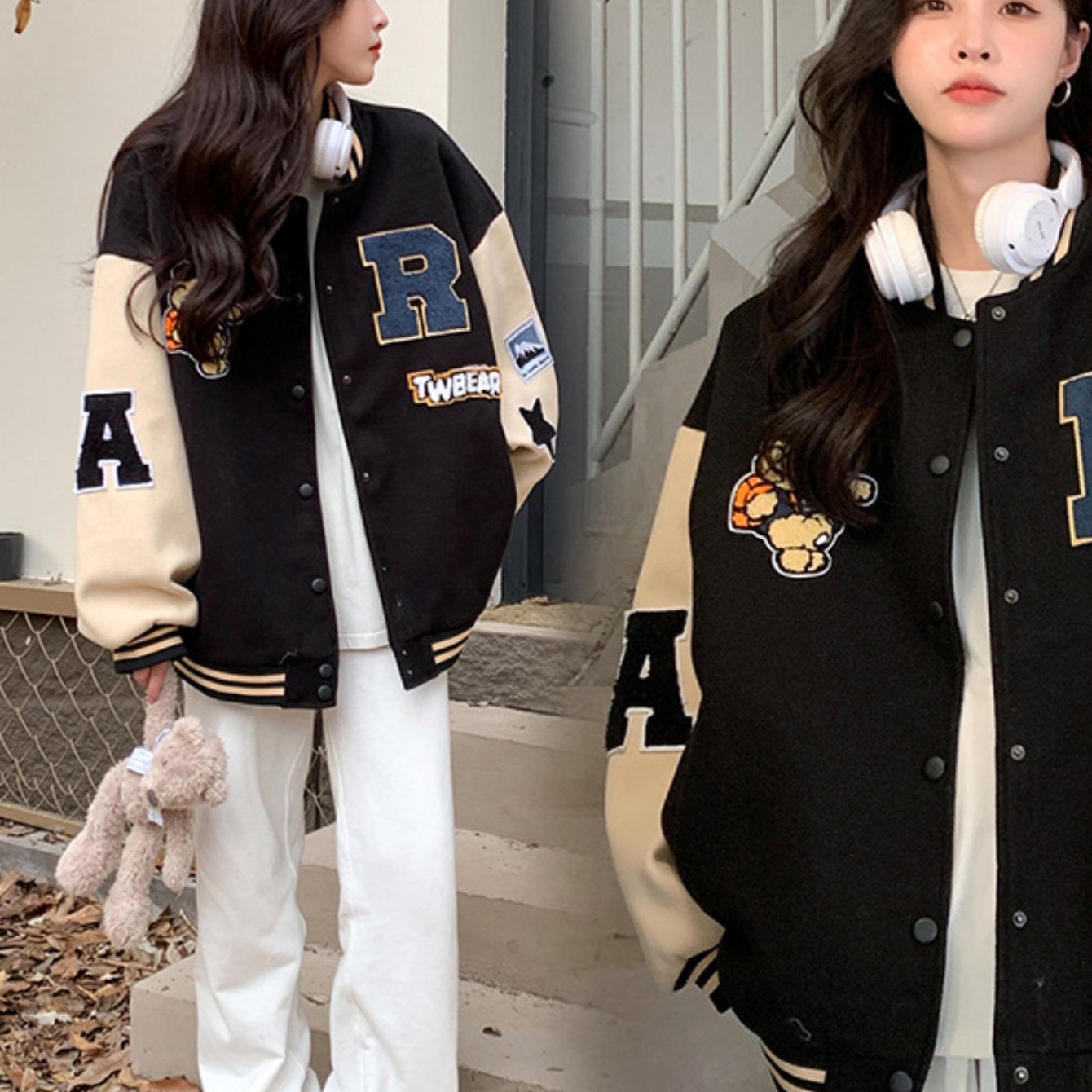 TEMU SunburstWonder 여성 가을 겨울 야구점퍼 도톰 학생 빈티지 오버핏