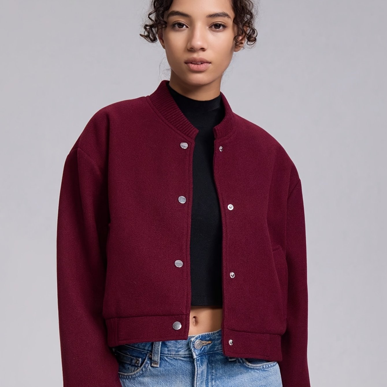 TEMU OUTTA BOX 여성용 우아한 긴팔 싱글 버튼 캐주얼 트위드 야구 점퍼, 가을 겨울 패션, 캐주얼 아우터, 캐주얼 스타일