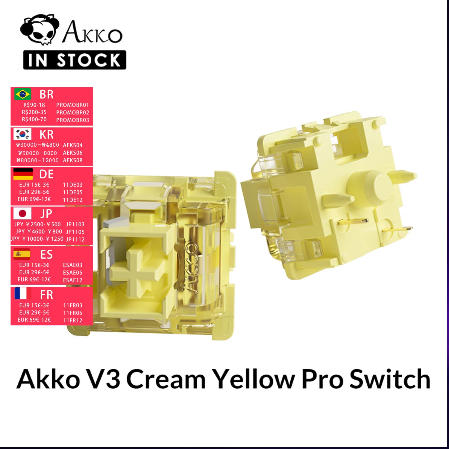 Akko V3 크림 옐로우 프로 스위치 5 핀 50gf 선형, Mx 기계식 키보드 용 안정적인 방진 스템 포함 (45 개)