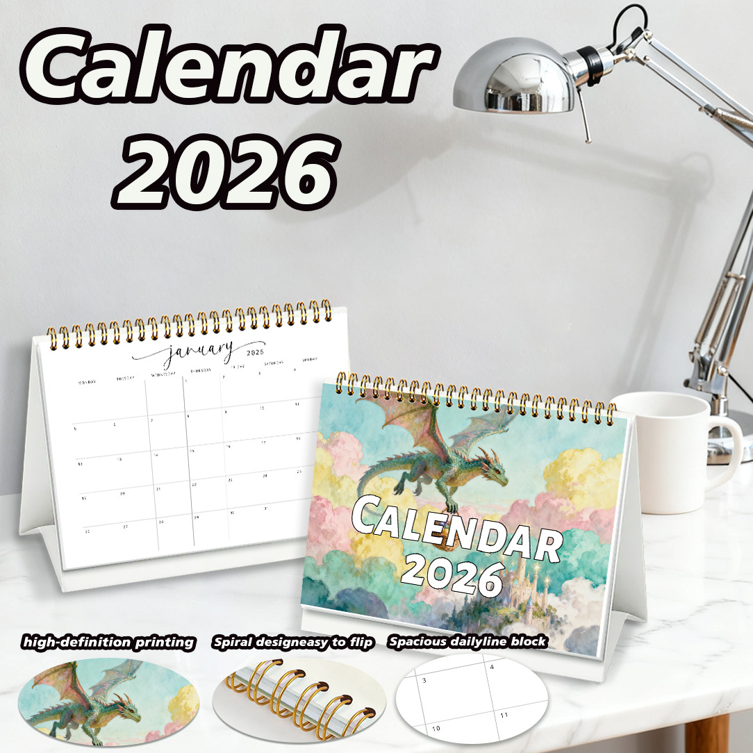 TEMU 2026 신규 판타지 드래곤 클랜 데스크 캘린더 | 12개월 드래곤 클랜 구름바다 꽃의 마법 왕국 캘린더 | 각 드래곤 클랜 전설의 월별 수채화 | 실용적인 일일 계획 기능 | 데스크탑 장식용 오너먼트 | 내구성을 위한 스파이럴 바인딩 | 고화질 인쇄 | 드래곤 애호가를 위한 선물 | 새해 선물 | 선물용 또는 개인용으로 적합 | A5 사이즈