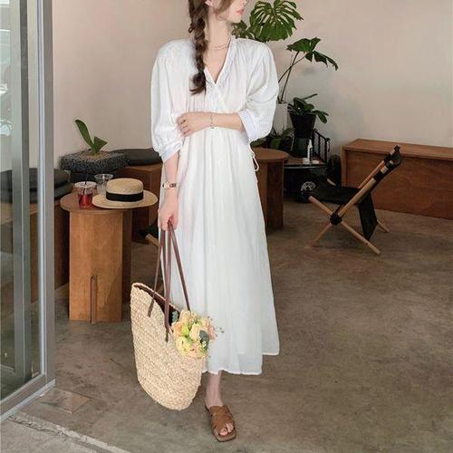 [무드수]루즈핏 편한 레이스 롱드레스 널디 봄원피스