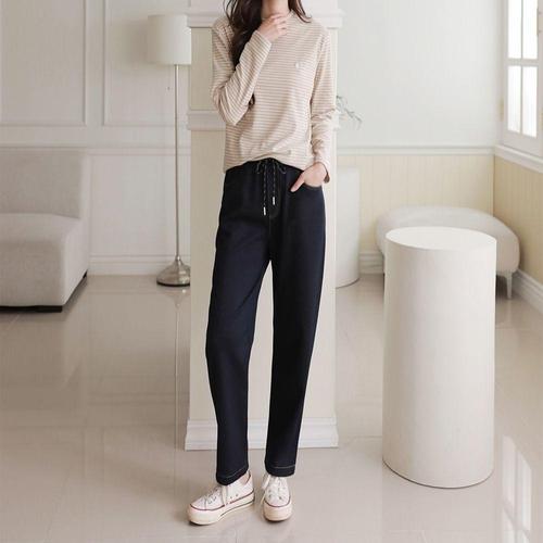 여성 2컬러 허리밴딩 베이직 소프트진 일자 청바지 WFK5SI3