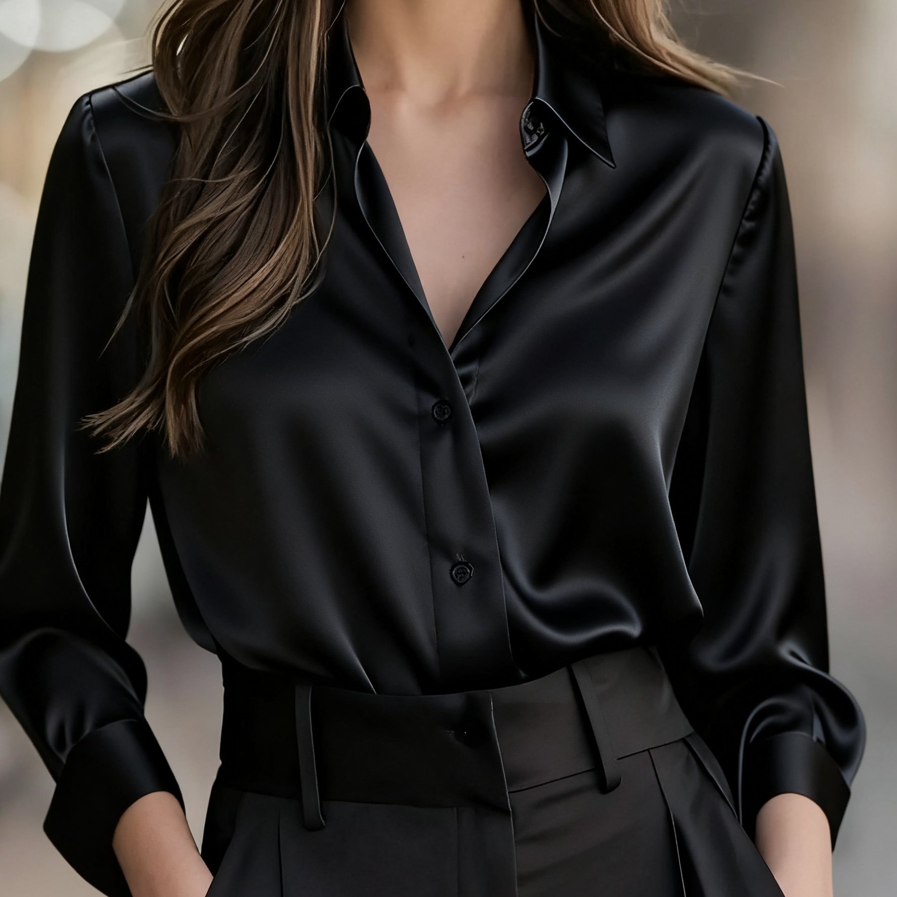 TEMU 여성 새틴 셔츠 긴팔 블라우스, 업무 사무실 캐주얼을 위한 우아한 새틴 버튼 탑