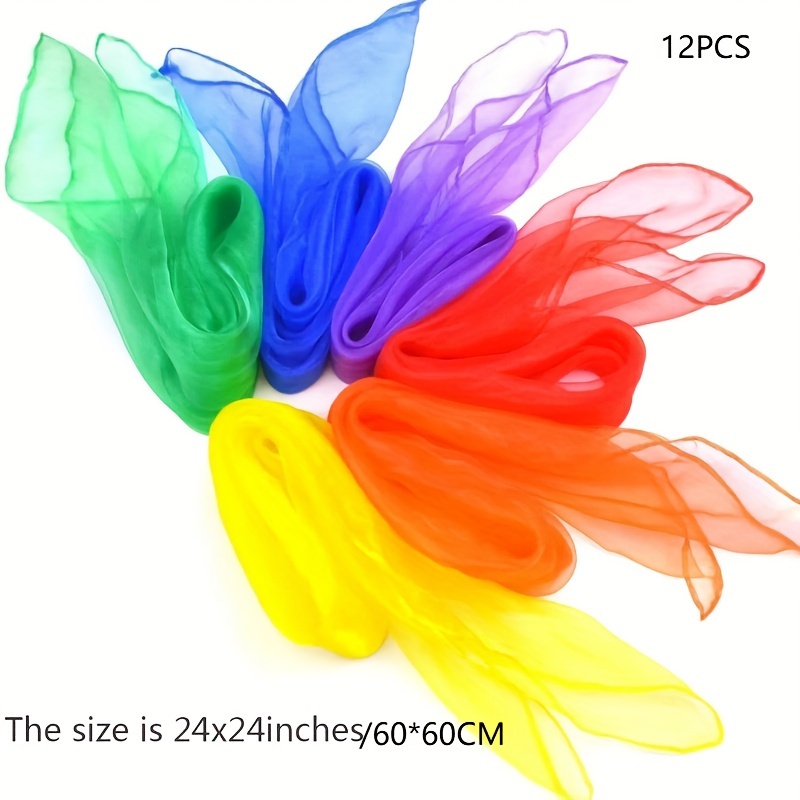 TEMU 24" x 24" 나일론 댄스 스카프 - 줄타기 및 마술용 12개 세트, 음악 그룹 및 리듬 활동에 적합, 스포츠 스카프, 리듬 스카프, 무지개 스카프, 컬러풀 뮤직 스카프