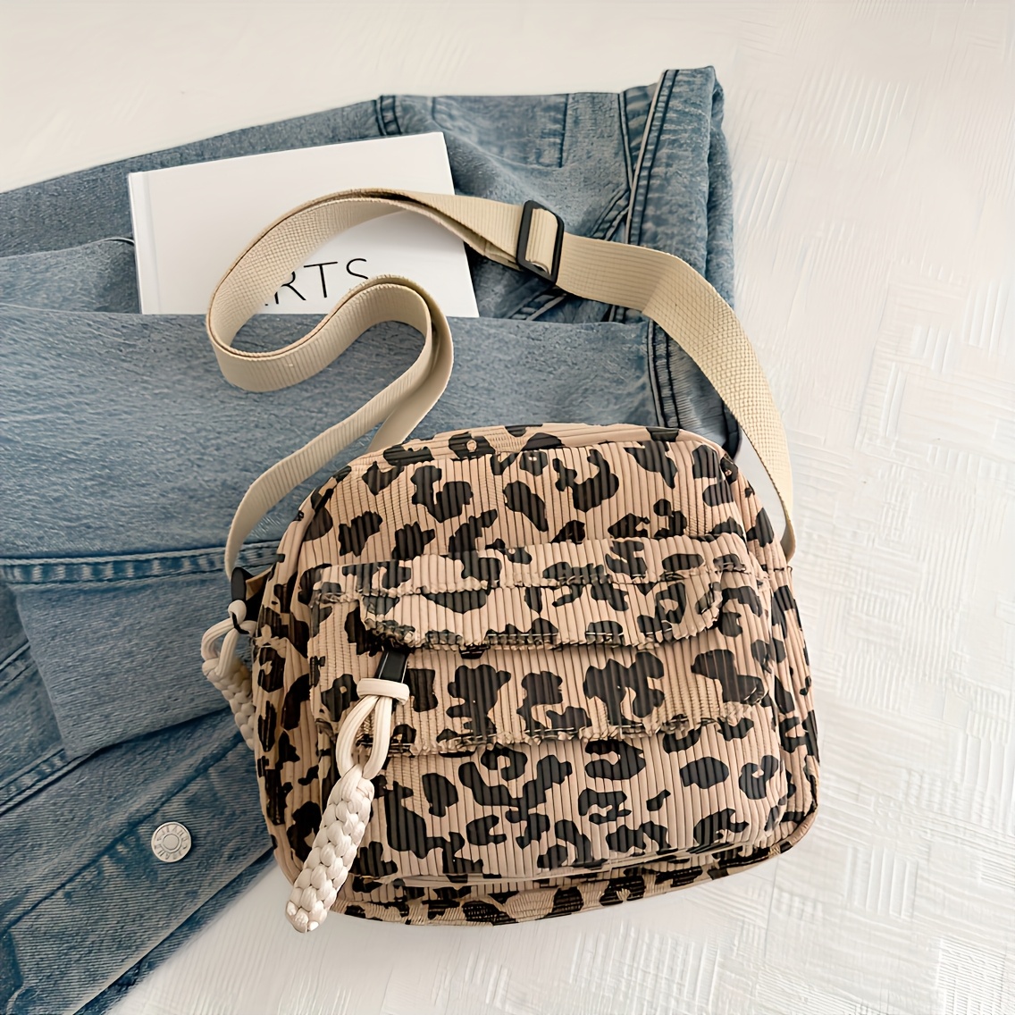 TEMU 프린트 여성 크로스바디 백, 다용도 코듀로이 스몰 스퀘어 백, 애니멀 프린트 여성 숄더 토트백, 아내 또는 여자친구를 위한 크리스마스 선물 가방.