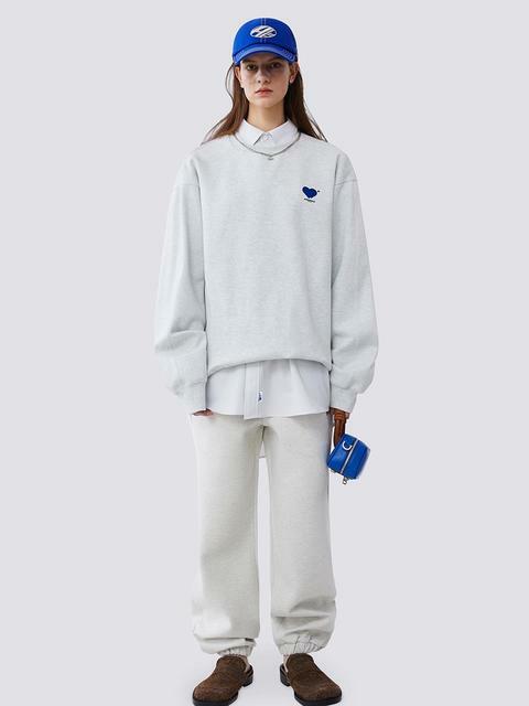 [던스트] UNISEX LABEL NEEDLEWORK SWEATSHIRT OATMEAL MELANGE_UDTS5C106I1