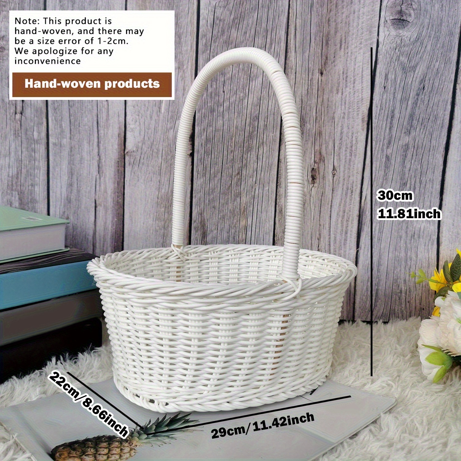 TEMU 우아하고 산뜻한 수제 직조 귀여운 토트 바구니, 발렌타인데이 장식 선물로 완벽, 웨딩 답례품을 위한 매력적인 꽃 바구니, 꽃집 장식에 적합, 봄 나들이 및 사진 촬영을 위한 장식 바구니