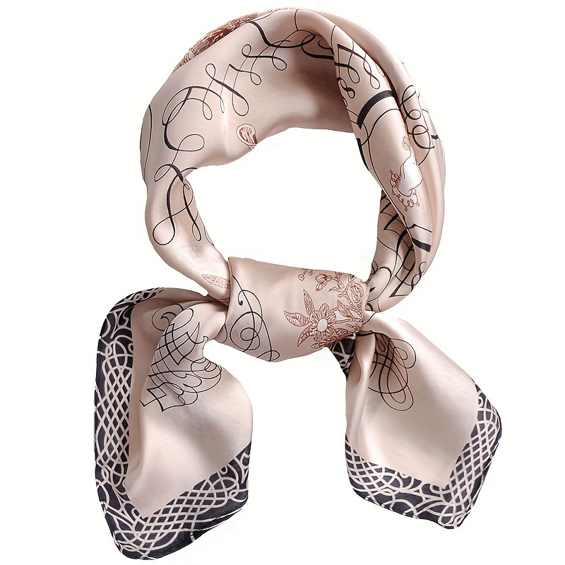TEMU 100% 멀베리 실크 여성용 우아한 스카프 - 프린트 디자인 특징 - 고급스러운 다기능 스몰 스퀘어 스카프 - 및 야외 레저에 적합