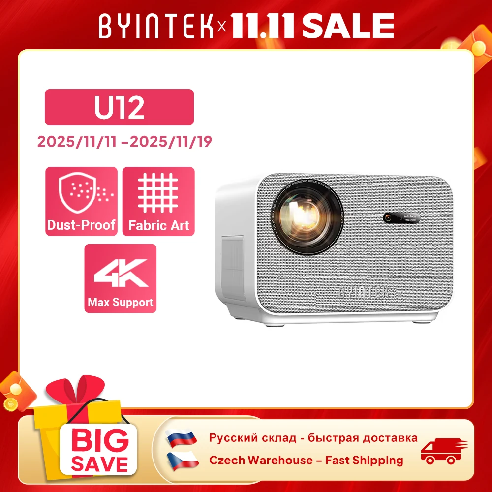 BYINTEK LOVE U12 풀 HD 1080P 프로젝터, 4K 800 ANSI 안드로이드 와이파이 6 자동 초점 홈 시어터 프로젝터, 영화 미팅 비디오용