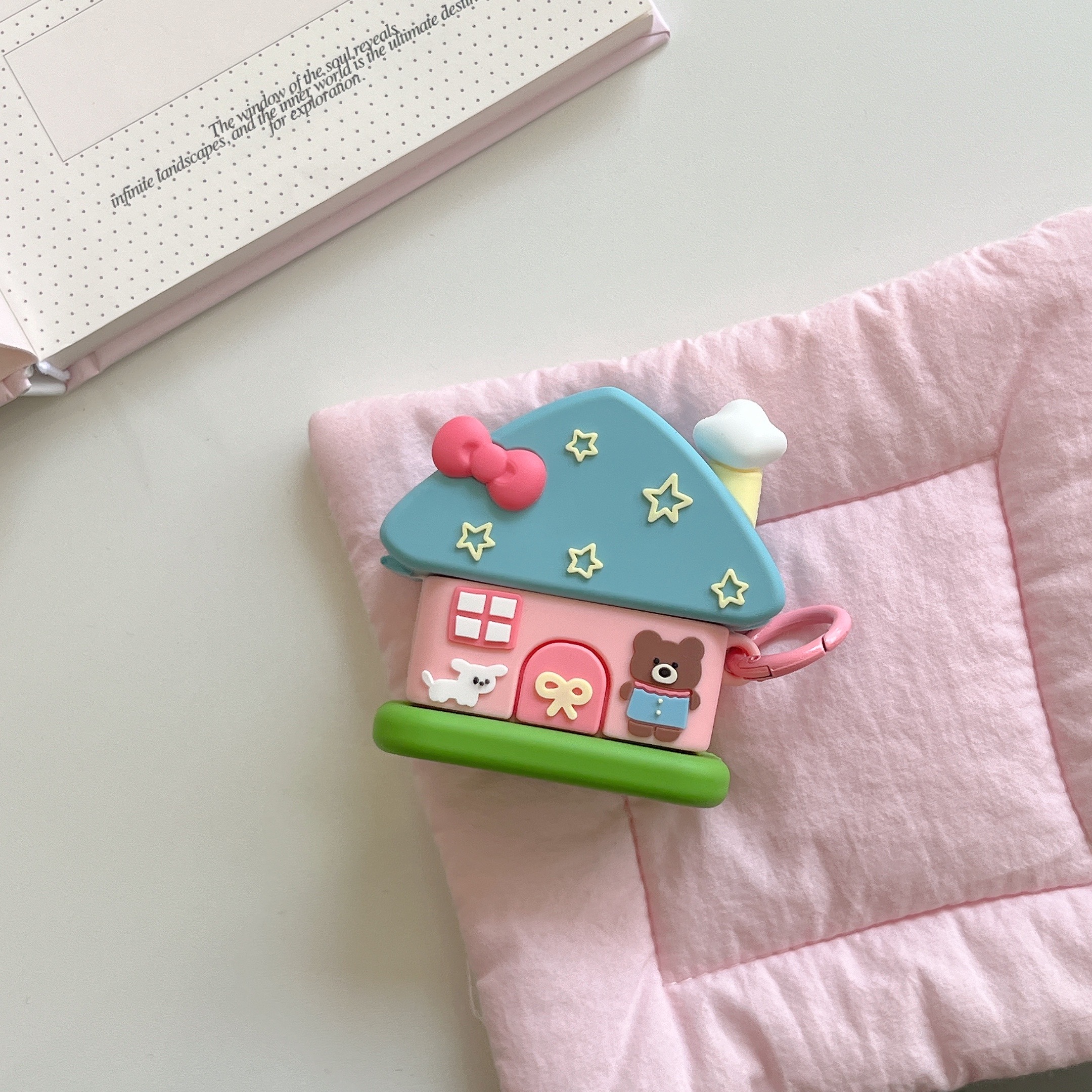TEMU 3D 귀여운 카툰 베어 하우스 소프트 블루투스 헤드셋 케이스 - 에어팟 4 2024, 3 프로, 2 무선 이어폰 커버 펀다