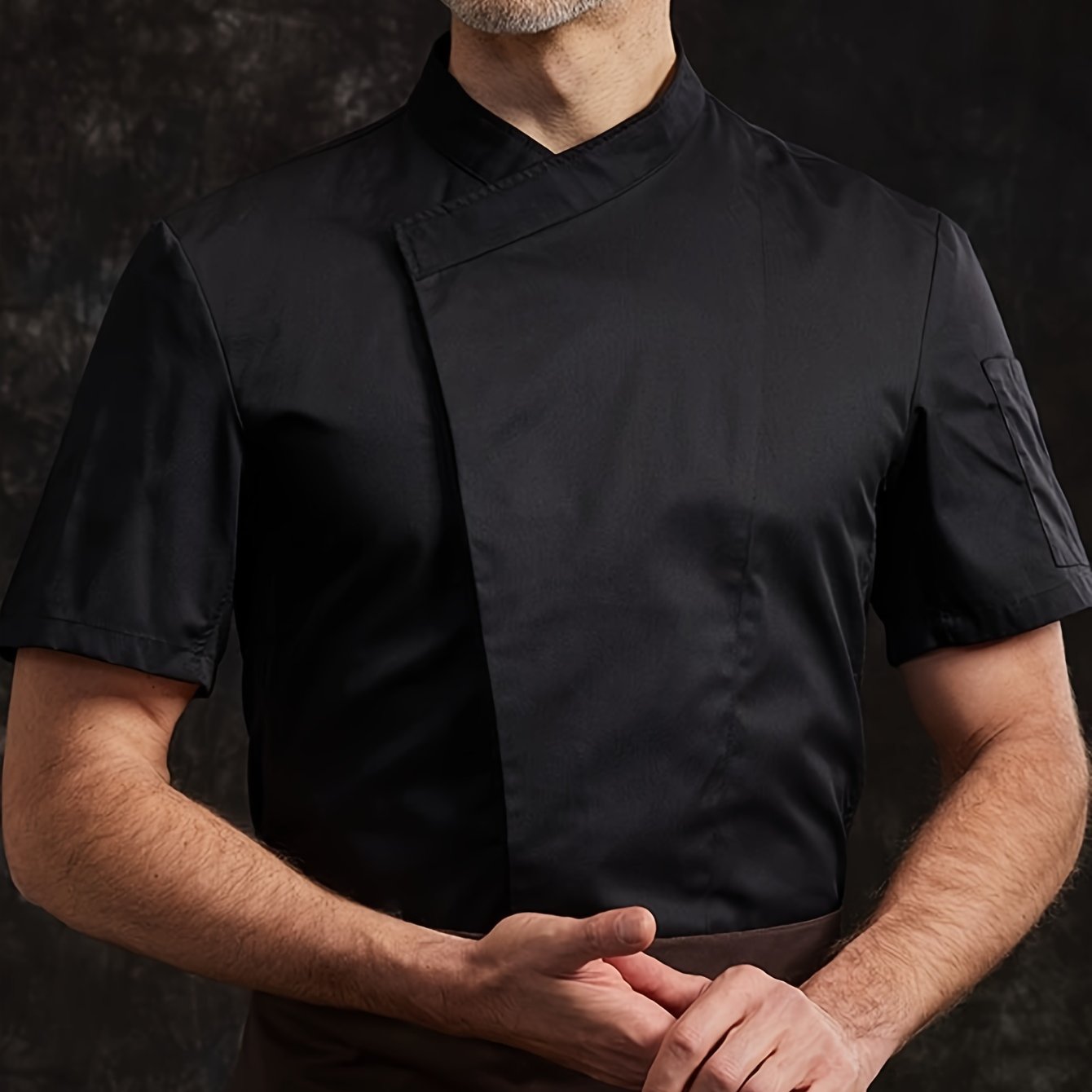 TEMU 남성용 여름 파리 스타일 셔츠 - 컬러 블록 프린트와 대조 칼라 & 소매 트림, 통기성 좋은 반팔 티셔츠, 캐주얼 및 업무복, 세탁 가능 레귤러 핏, 편안한 착용감의 부드러운 원단