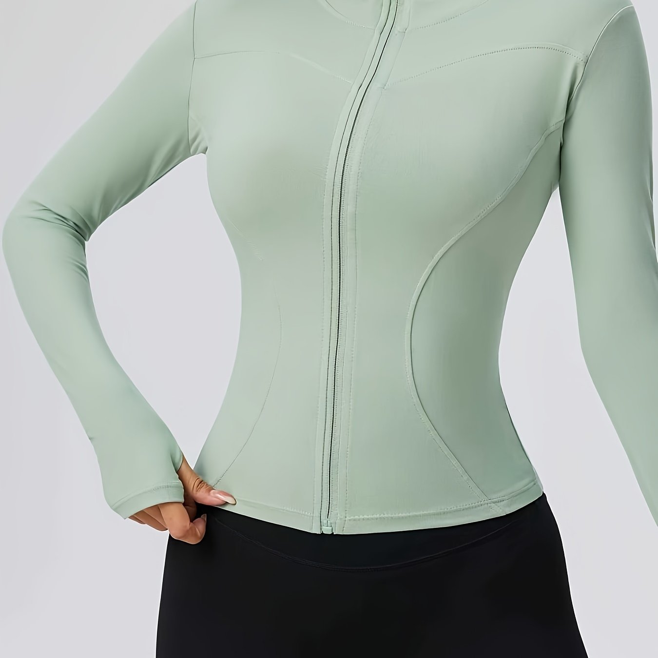 TEMU 2025년 신상 가을 여성 블랙 재킷 | 스포츠 캐주얼 크루넥 스웨트셔츠, 신축성 좋은 원단, 단색 패턴.