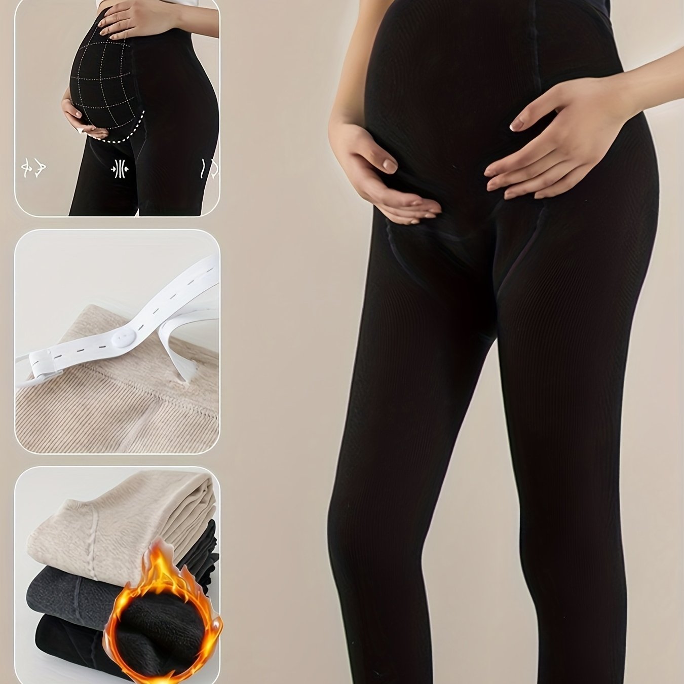 TEMU 임산부 레깅스 230G, 세로 , 가을/겨울용 두꺼운 재질, 3-10개월 임산부에게 적합, 높은 탄성 및 부드러움, 허리 폭 조절 가능, , 회색 및 블랙 색상으로 제공, 임산부를 위한 훌륭한 선물