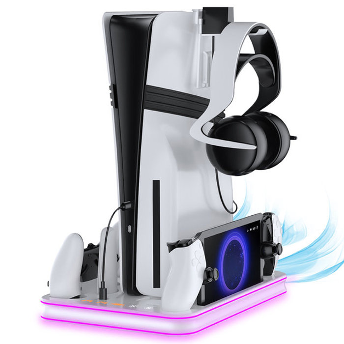PS5 PS5 PlayStation 콘솔 디스크 디지털용 슬림 냉각 스테이션 컨트롤러 포함 충전 PS5 액세서리용 쿨러 LED 조명 스탠드 3개 USB 허브 헤드셋 홀더