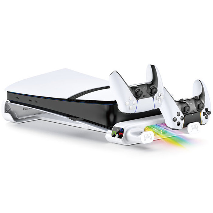 PS5 Slim Pro 스탠드 LED 컨트롤러 충전 스테이션 PlayStation 콘솔 충전기 냉각 스탠드 액세서리 키트 3레벨 쿨러 포함