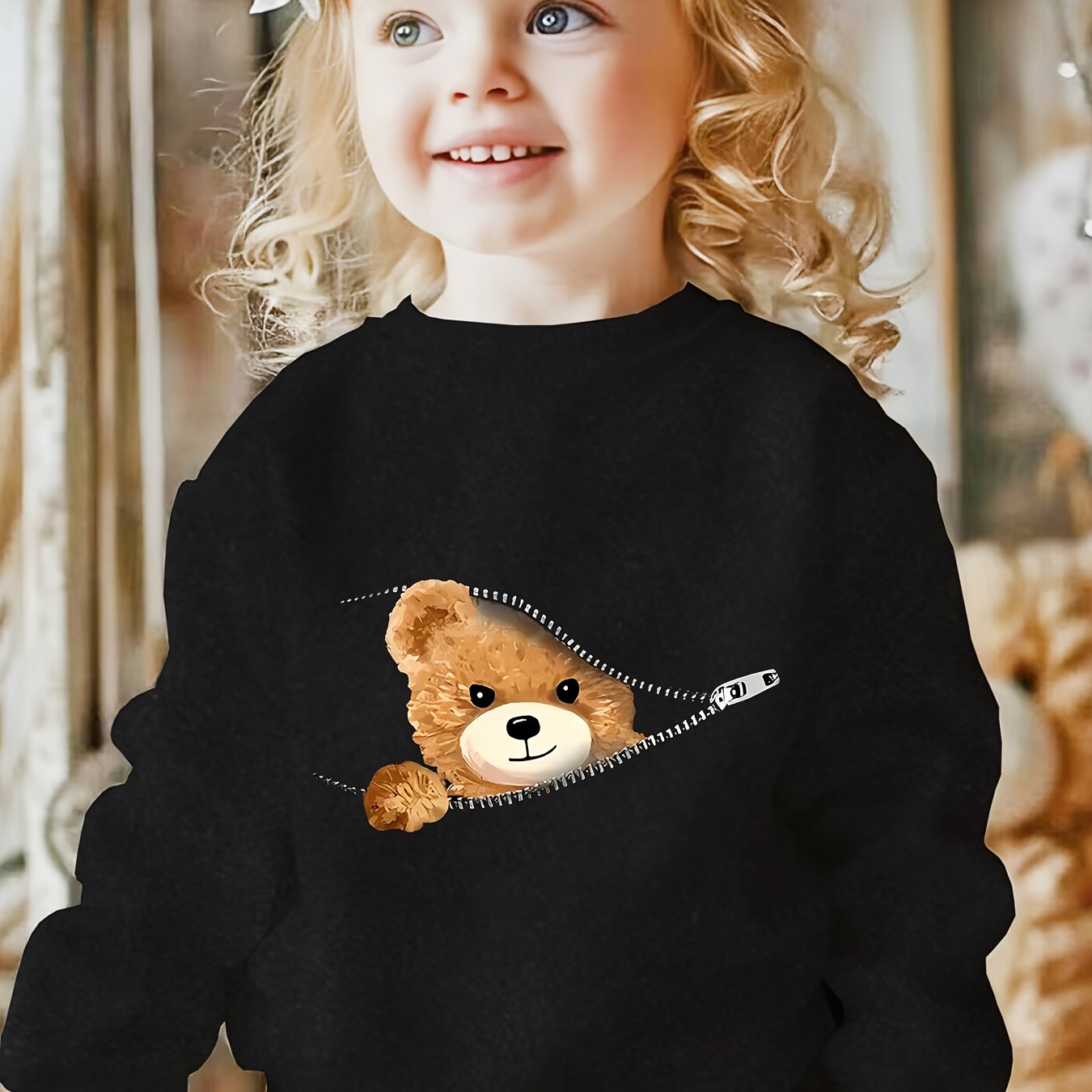 TEMU 새로운 패션 카툰 베어 스웨트셔츠, 귀여운 애니메이션 풀오버 키즈용, 아동용 캐주얼 데일리웨어 O넥 패치워크 긴팔 탑 가을 겨울용