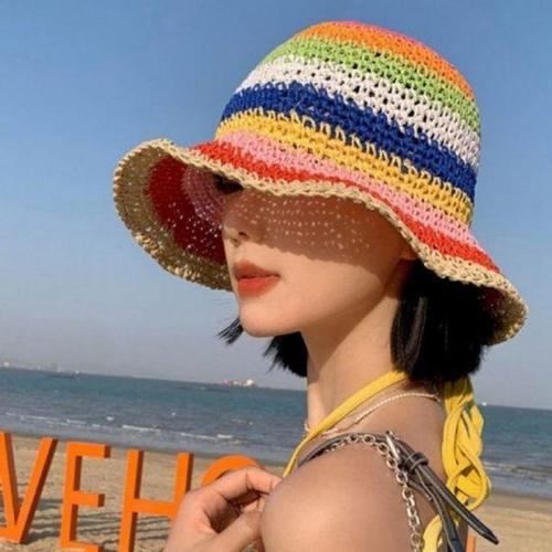 [신상오픈런]|CMC168C|트하찌 라탄 버킷모자 차단 모자 넓은 여성 밀짚 레인보우_18147687_597559