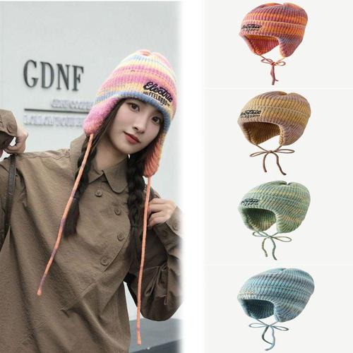 여자 레인보우 군밤모자 겨울 귀달이모자 니트 비니 WDAEB41