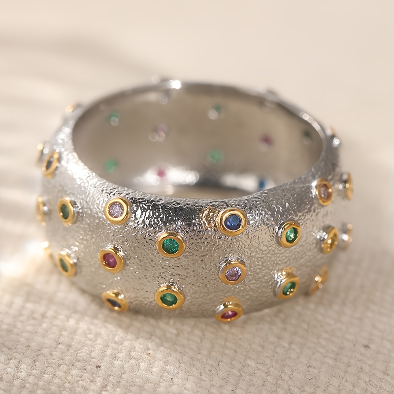 TEMU 여성용 우아한 와이드 밴드 링 - 반짝이는 합성 지르코니아 악센트, 화이트 골드 도금 구리, 일상 착용 및 파티에 완벽, 고급스러운 주얼리 액세서리, 파티 주얼리|우아한 링 디자인|합성 지르코니아 악센트