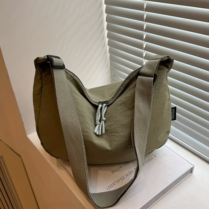 TEMU 순수 컬러 나일론 원단 싱글숄더백 지퍼 레이지 윈드 캐주얼 다용도 가방 여성용 출근 대용량 크레센트백