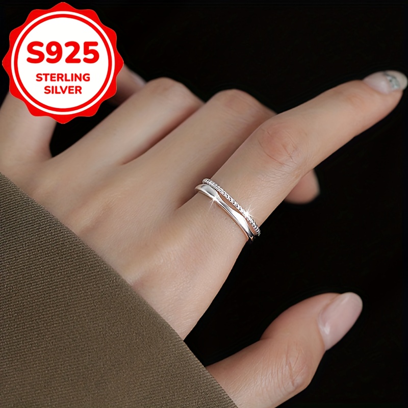TEMU 스털링 실버 더블 레이어 라이트 럭셔리 니치 디자인 여성 반지, 패션 개성 오픈 링, 뮤직 페스티벌, 이스터 파티, 데일리 웨어, 휴가용, 링,정교한 장인 정신,가벼운 반지, 링,독특한 반지,패션 애호가