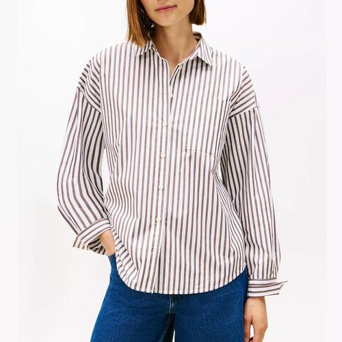 [해외배송] 타미 여성 릴렉스 스트라이프 팝린 셔츠 Mocha