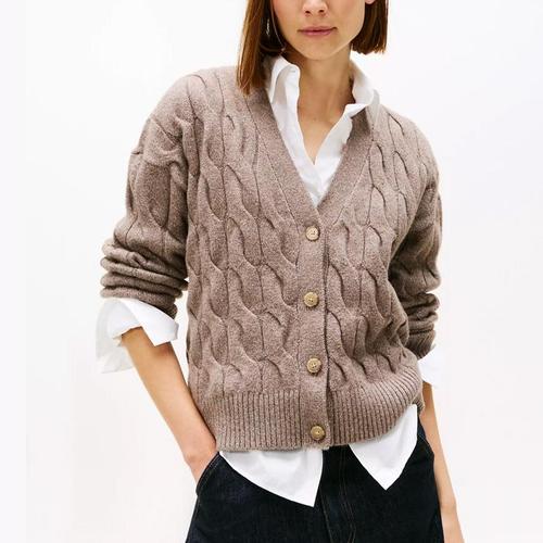 [해외배송] 타미 여성 케이블 니트 가디건 Brown