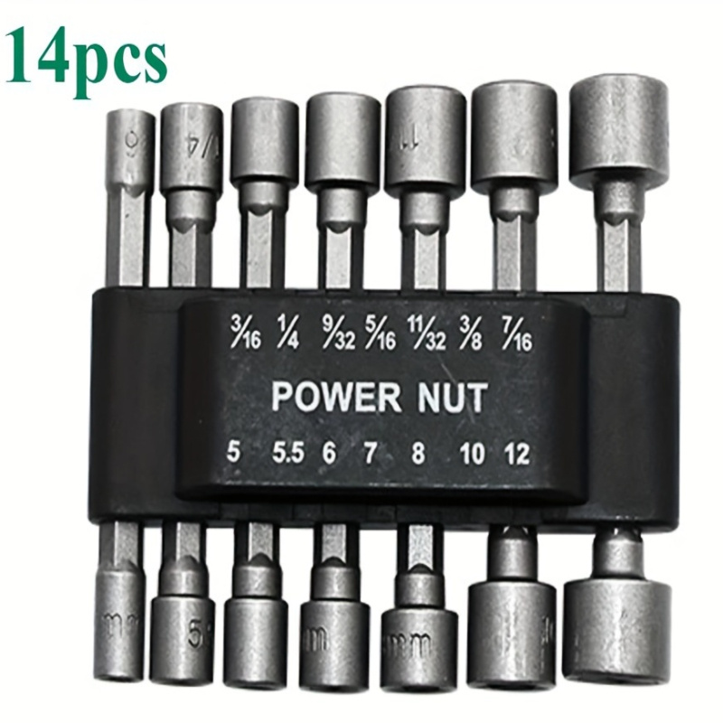 TEMU 1/4인치 육각 생크가 장착된 고 토크 작업을 위해 설계된 고급 전동 드라이버 비트 14개 세트입니다. CRV 재질로 제작되었으며, 5~13mm 범위의 고정 작업에 이상적이며 내구성과 다용도로 사용할 수 있습니다.